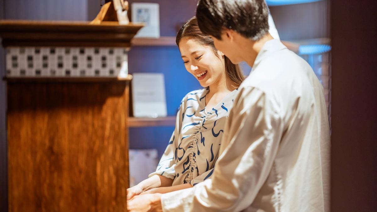 温泉施設「松泉宮(しょうせんきゅう)」の奥の湯「月読」および前の湯「新月」をご滞在中無料でご利用いただけます。1千万年前の地層から湧き出す温泉は、ミネラル豊富な美人の湯。疲労回復や冷え性など様々な症状に効果あり。リゾートステイとともに爽やかな湯浴みをお楽しみください。