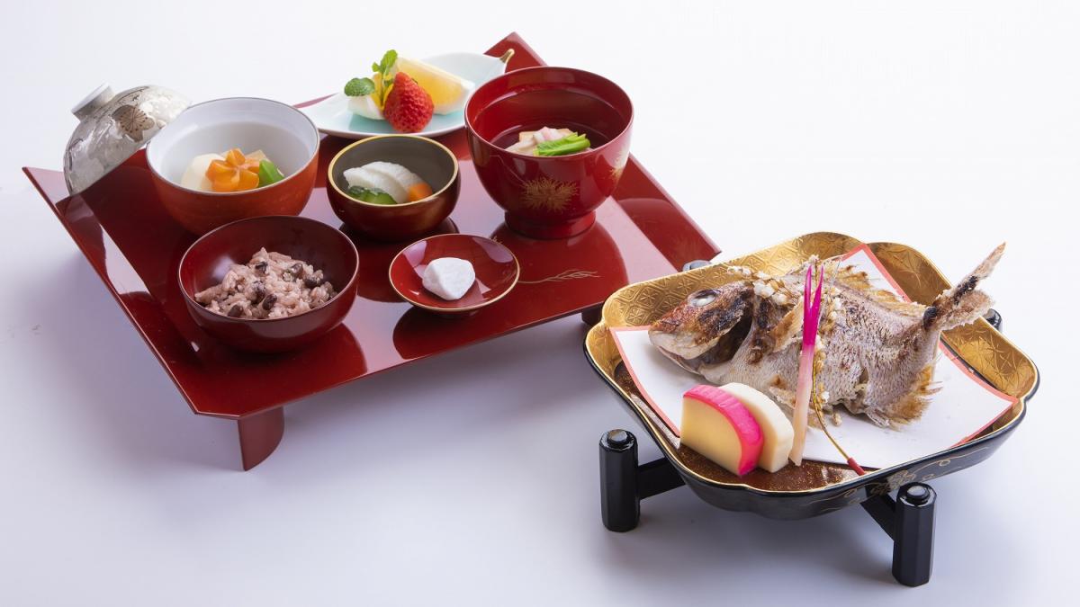 小鯛の姿焼き / 紅白蒲鉾 / はじ神 / 稲穂