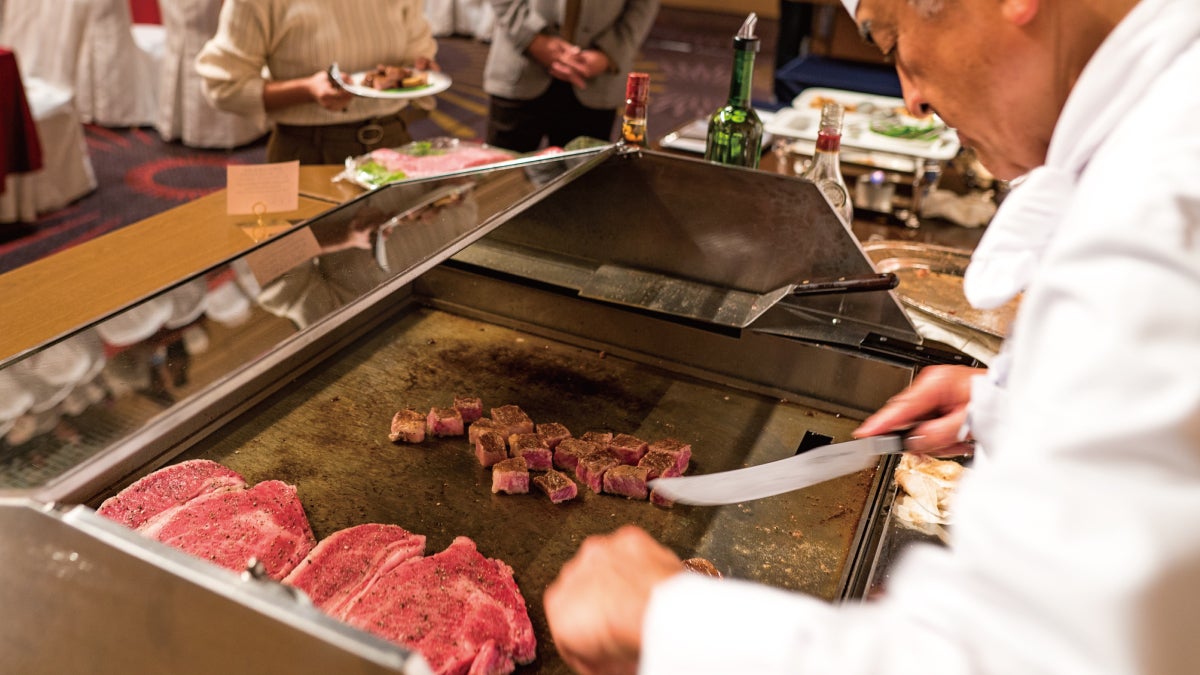 ●屋台料理:宮崎牛の鉄板焼き/宮崎牛肩ロースのしゃぶしゃぶ/ロブスターの鉄板焼き/天麩羅/握り寿司/スイーツ等