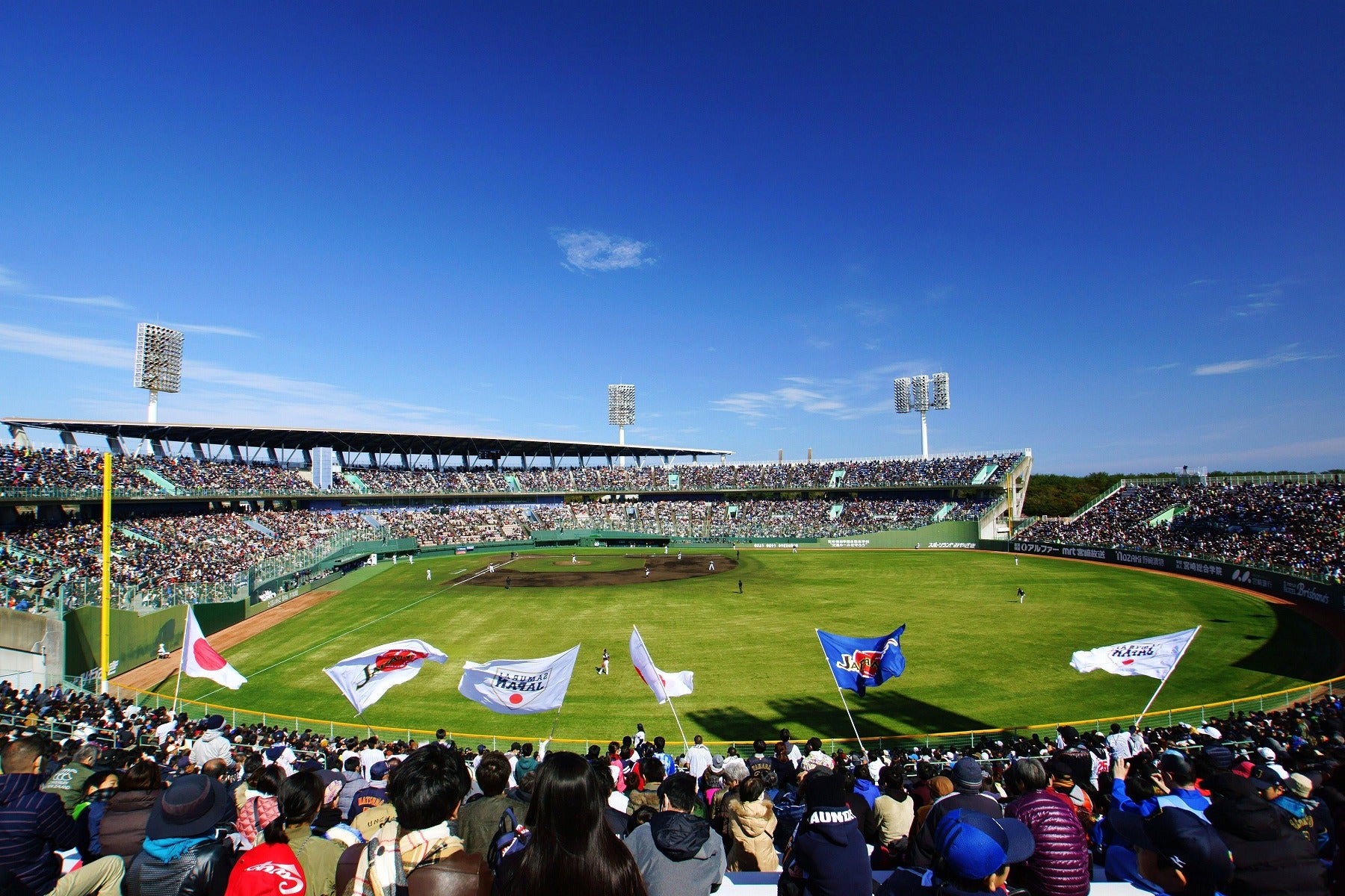 一年中温暖な気候で快晴日数が多く、設備が充実している宮崎県は、国内外の多くの球団やチームからスポーツキャンプの聖地として選ばれています。なかでも2月はキャンプシーズン。冬でも日中は比較的温暖な宮崎県には、毎年2月になると国内から多くのスポーツチームがキャンプに訪れ、スポーツファンでにぎわいます。
